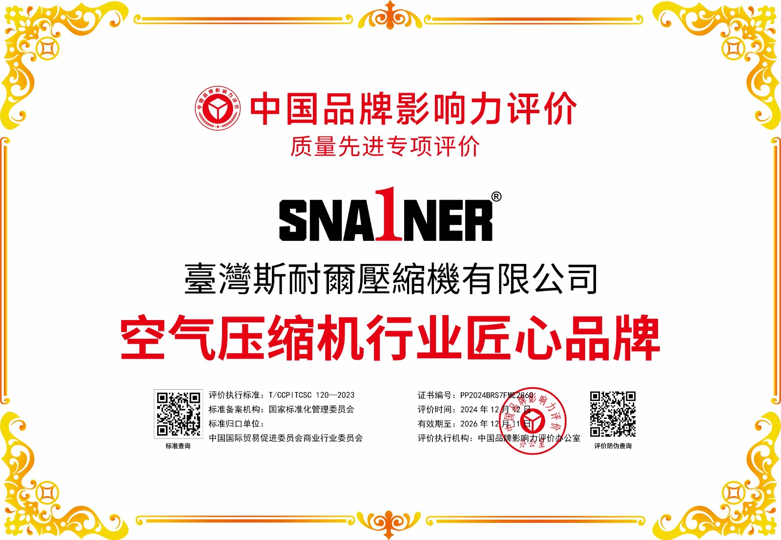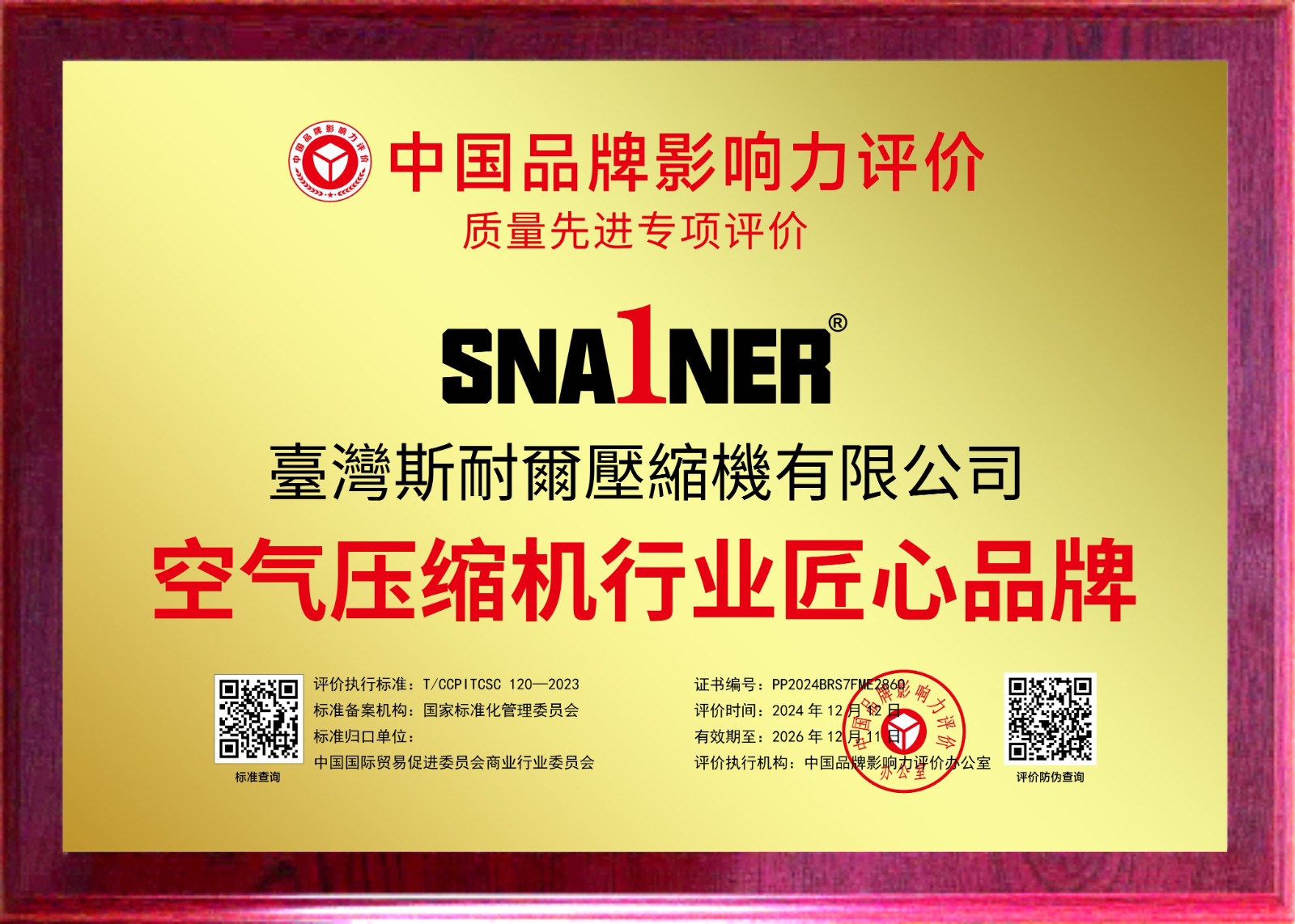 近日,中国影响力评价质量先进专项评价结果正式揭晓,台湾斯耐尔空气压缩机有限公司凭借卓越的产品品质、深厚的技术积淀与坚定的匠心坚守,再次荣膺“空气压缩机行业匠心品牌”称号。这一荣誉不仅是行业对斯耐尔品牌实力的高度认可,更是市场与用户对其长期深耕压缩空气动力技术领域的充分肯定,为品牌发展历程再添浓墨重彩的一笔。